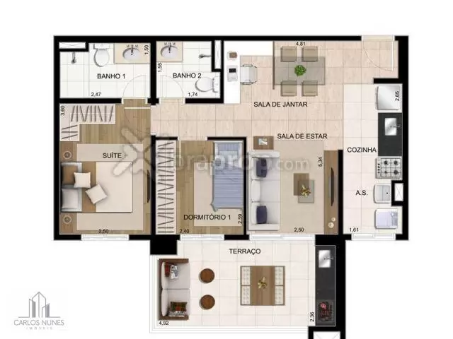Apto com 83m² - 3dorms sendo uma suite, sala,cozinha, 1 banheiro, varanda com churrasqueira, lavanderia e 2 vagas de garagem.
