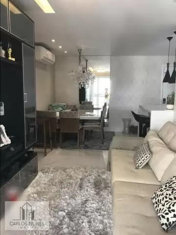 Apto com 80m²,3 dormitórios (sendo 1 suíte), sala com 2 ambientes (com ar condicionado), varanda com churrasqueira e forno/fogão a lenha, cozinha, área de serviço e 2 vagas de garagem.