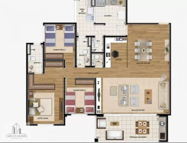 Apto com 132m², 3 quartos sendo 2 suítes com armários planejados e todo os móveis, sala com 2 ambientes toda mobiliada, cozinha com armários planejados, varanda gourmet, lavanderia e 3 vagas de garagem.