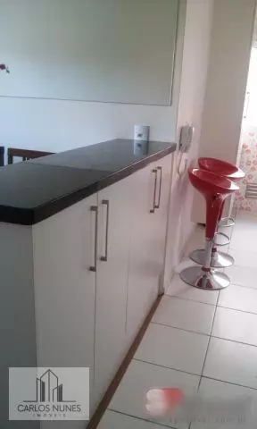 Apartamento com 47m², cozinha(com armários planejados), 2 quartos (com móveis planejados), sala, varanda, 1 banheiro e 1 vaga de garagem.